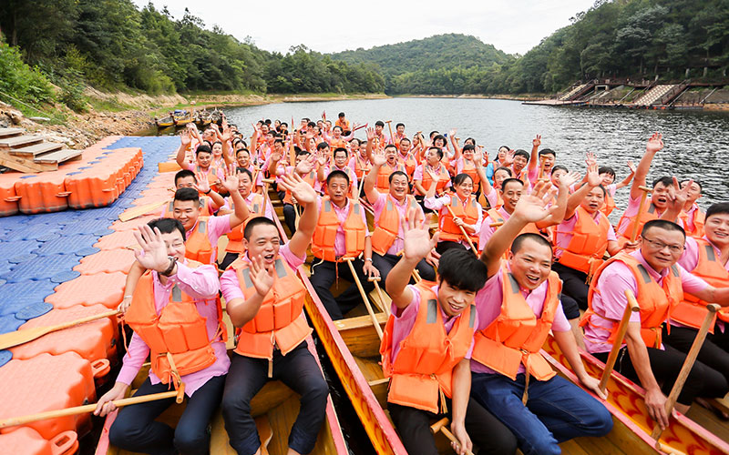 湖南申亿公司组织员工划船,凝聚团队力量。